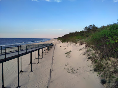 Dużą atrakcją są tu drewniane schody z pomostami, którymi można zejść wprost na plażę. Ponoć jest ich 267. Nie sprawdzałam, bo musiałabym potem wchodzić nimi na górę. Nie mniej jednak widok z góry na Zatokę Pomorską wywołuje odruch nostalgii.